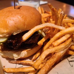 If you ever are in the Denver Highland area and want a good burger & and brew, stop on in. We happen to drop on in to watch the Alabama Crimson tide game. As soon as you walk in, there's a huge bar and family like seating area to the left. We were seated in the family seating area, and there is plenty of seating and tvs to see games, etc. We opted to move to the bar area because it was too quiet in our area. We wanted to be part of the action during the Bama game. The hostess was nice enough to accommodate us. The bar area was packed, and the energy was high for the Alabama vs. Georgia football game. The server we had in our section was amazing and very attentive. We had a couple of burgers and beers. They have plenty of Colorado beers on tap for you to pick from. Now, if you want a tasty burger, this is the place for sure, and the fries (sweet potato) have crack on them because they were addictive I tell ya! By halftime, we had to leave though there was an extremely annoying loud hipster acting up feet from us. He was so bad that it was hard to hear the game that was playing on the speaker system. When some of them get some liquid courage in them, they act like zoo animals. He constantly kept bragging about his glory days as a long snapper, blah, blah, blah. I don't knock the restaurant for clowns like this. None the less we would definitely come back for a sporting events and great food & drinks.