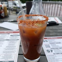 The bloody mary here was so damn good I asked for it spicy and it has my eyes on watering just a bit - no bs. I only tried a bite of the burger which was delicious the sauce on it was slathered on pretty thick and it was a messy but wonderful bite. The french fries were good but not as crispy as I personally like my fries to be. The outdoor patio was really nice too inside felt a little dark and there was a heavy smell going on but I may just be sensitive. Our food came out quick and was hot and delicious.